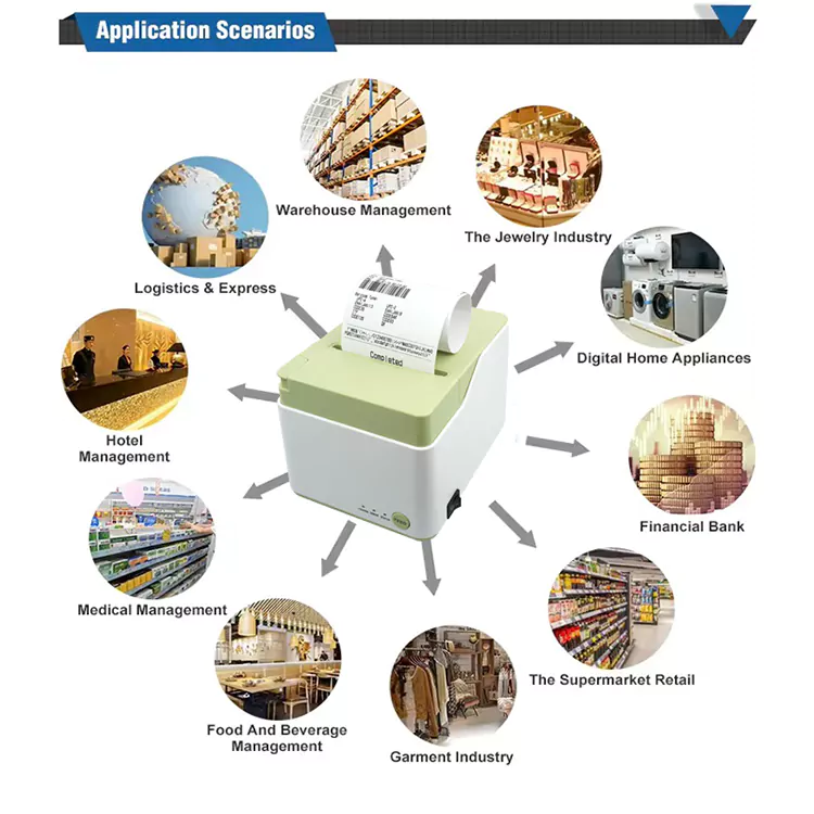 এটির মুদ্রণের গতি 250 মিমি/সেকেন্ড, একটি কার্যকর মুদ্রণ প্রস্থ 72 মিমি বা 64 মিমি। এটি UPC-A, EAN-13, CODE39, এবং CODE128 সহ একাধিক বারকোড সমর্থন করে, এটিকে ক্যাটারিং, ডিপার্টমেন্ট স্টোর এবং সুপারমার্কেটের মতো বিভিন্ন শিল্পের জন্য উপযুক্ত করে তোলে।